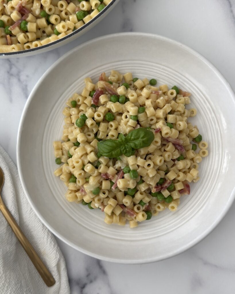 Pasta with peas is best enjoyed fresh, but leftovers keep well for up to 4 days in the fridge. Store in an airtight container, and reheat gently with a splash of water or broth to bring back the creaminess.