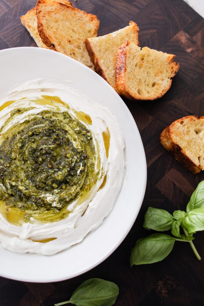 Yes. If you don’t have basil, arugula is the best substitute and adds a fresh, slightly peppery flavor that works well with pistachios. Spinach can also be used, but it’s best paired with a small amount of a more vibrant herb, such as parsley or mint, so the pesto doesn’t taste flat.